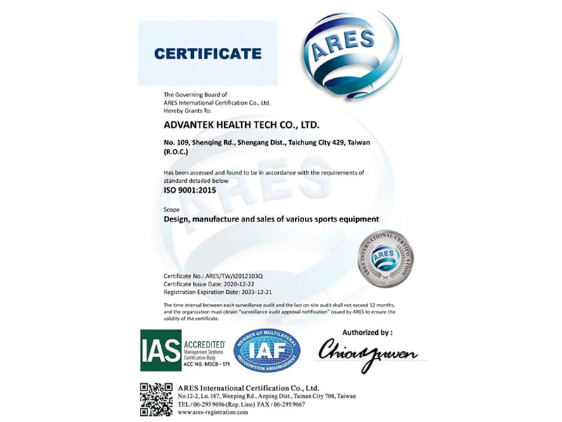 ISO 9001:2005 Advantek never forgot our mission - provide the best design, manufacture, and deliver leading quality fitness equipment to enhance our customer's advantages. Advantek is proud to announce that we have been certificated for ISO 9001:2005 to ensure our mission will continue.